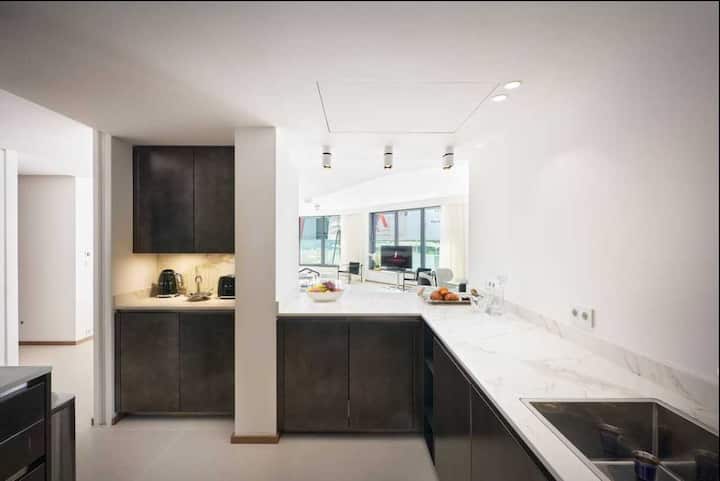 • Modern kitchen with state-of-the-art appliances and marble countertops